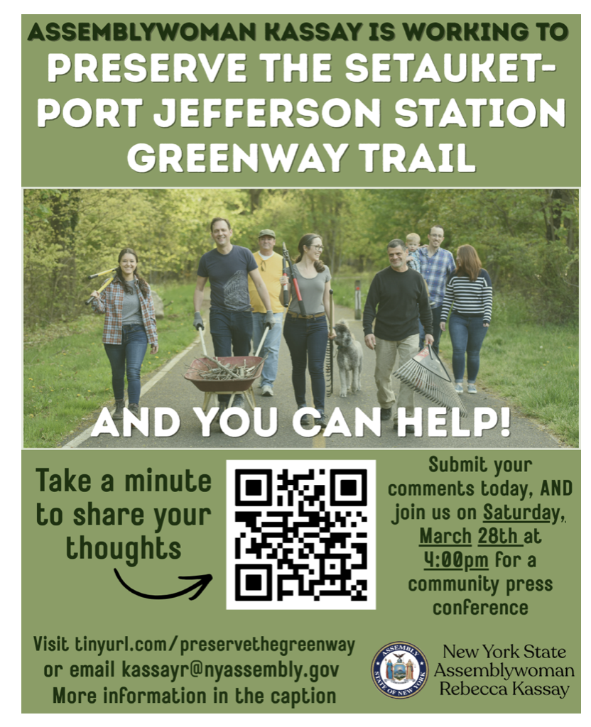 Our community has invested years of stewardship, volunteer time, and public support into making the Greenway an essential part of the Three Village and Port Jefferson Station area. Millions and millions of New York State and Federal tax dollars were dedicated to the buildout of the Greenway – which supports public health, protects the environment, provides safe routes for children and the character of our neighborhoods.